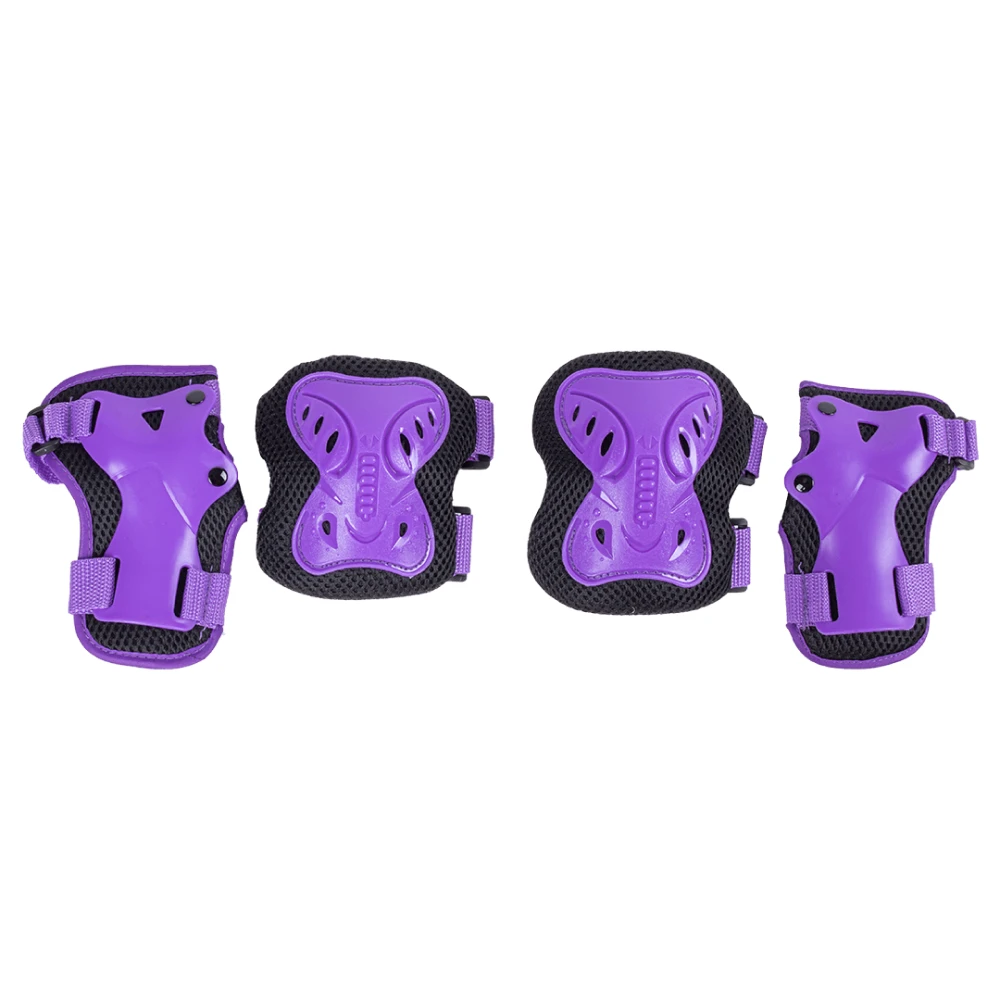 Этот набор включает в себя шлем, защитные очки, налокотники, наколенники и наручи, все в соответствующем фиолетовом цвете. Они изготовлены из прочных и гибких материалов, которые обеспечивают отличную амортизацию и защиту от ударов.
