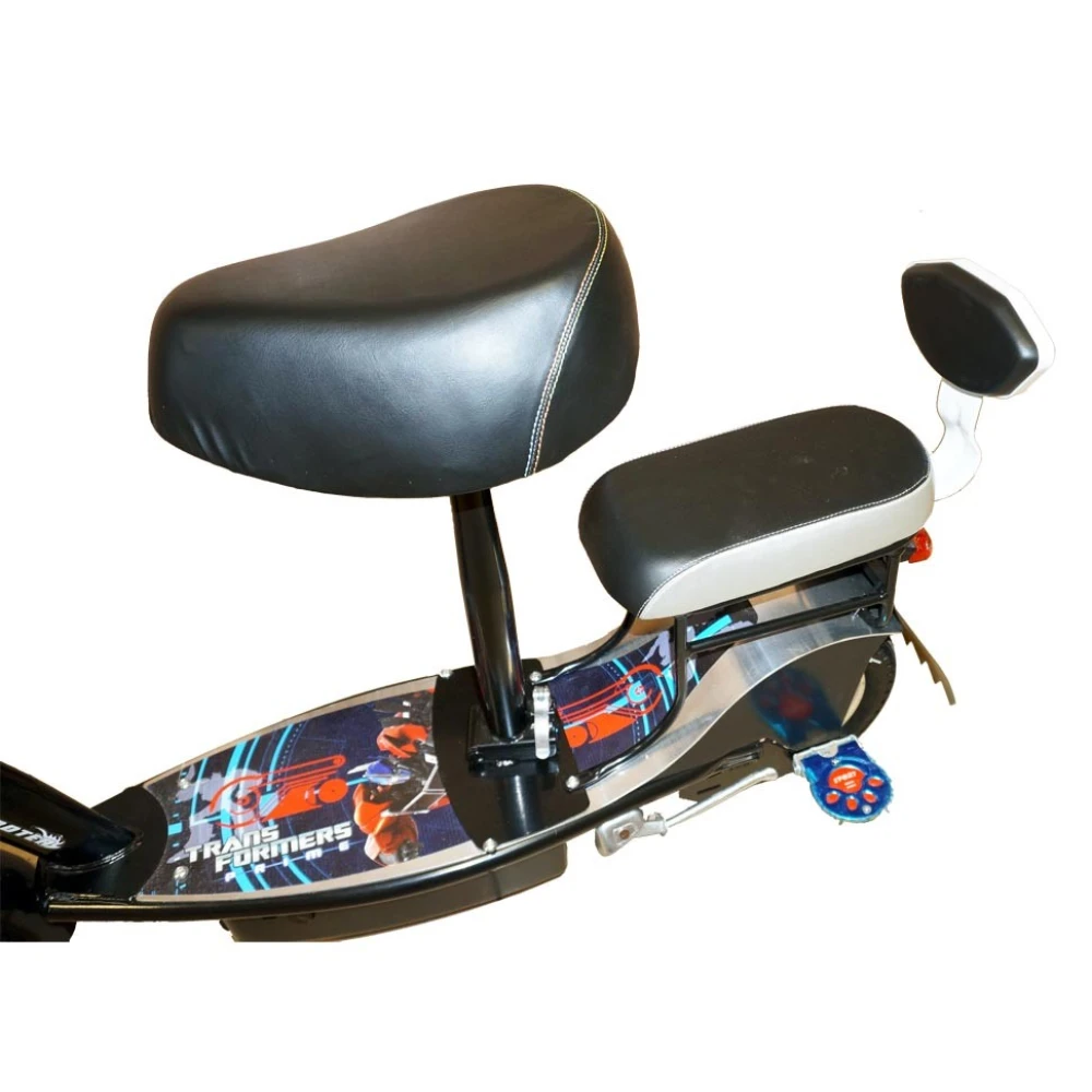 Удобство и практичность электросамоката заметны невооруженным глазом. Производитель позаботился, чтобы ездок и пассажир не ощутили усталости и нагрузки на позвоночник. Широкая дека – прорезиненная и нескользящая, рулевая часть – максимально наполнена функционалом. Стальная конструкция рамы не деформируется при максимальной нагрузке до 80 кг. Оснащенность большой светодиодной фарой допускает езду в вечернее время.