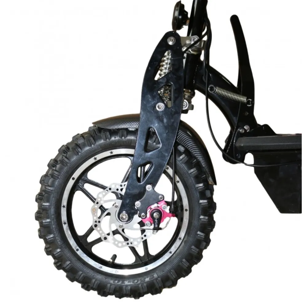Вес электросамоката T-Walker 1000 составляет 43.5 кг, при весовой нагрузке 120 кг. Диаметр колес 14 дюймов. На рулевой стойке расположена светодиодная фара, сзади стоп-сигналы красного цвета. В темное время суток вы будете заметны. На руле спидометр, и звуковой сигнал, чтобы обращать на себя внимание.