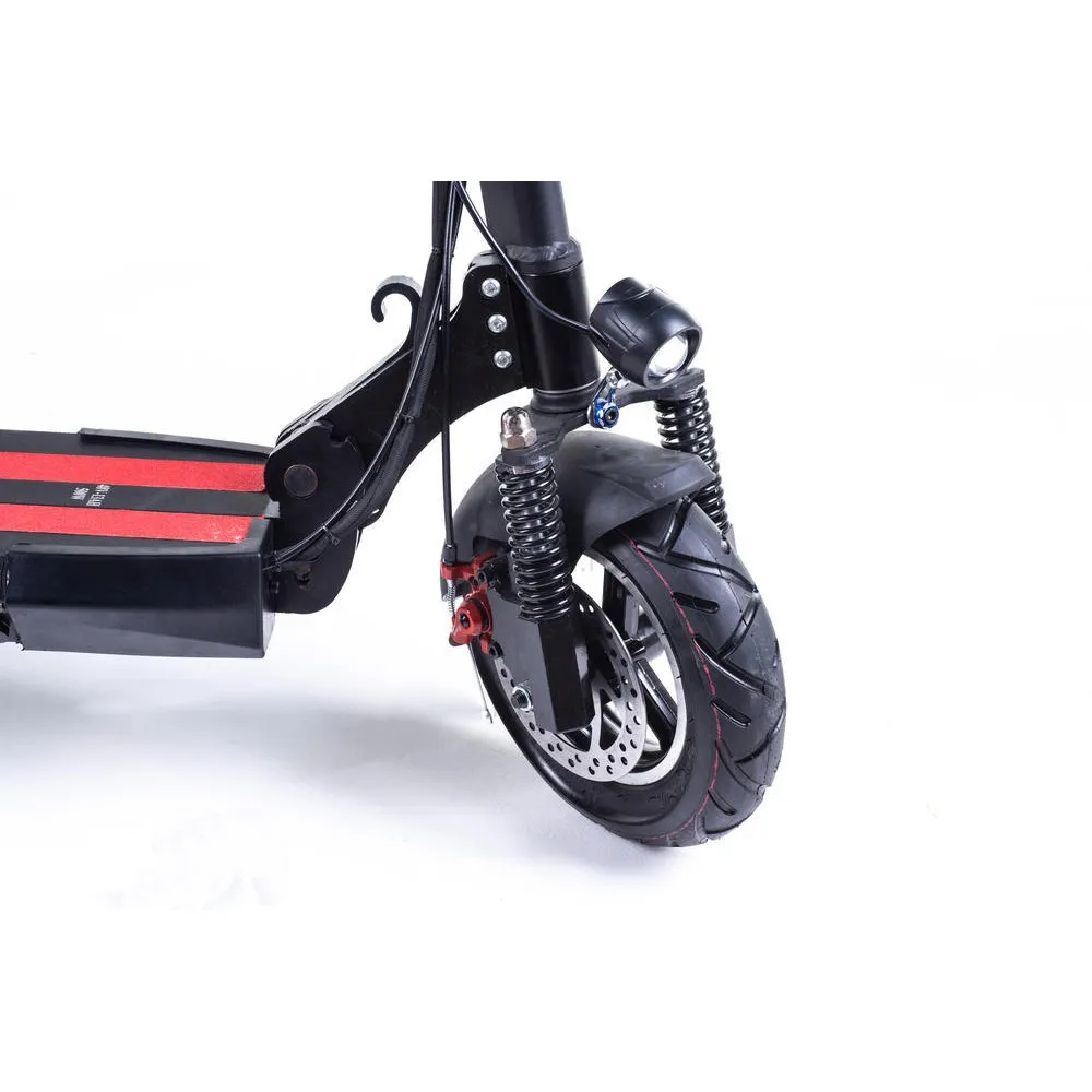 10″ колёса + передний и задний амортизаторы для плавного движения по неровным дорогам.