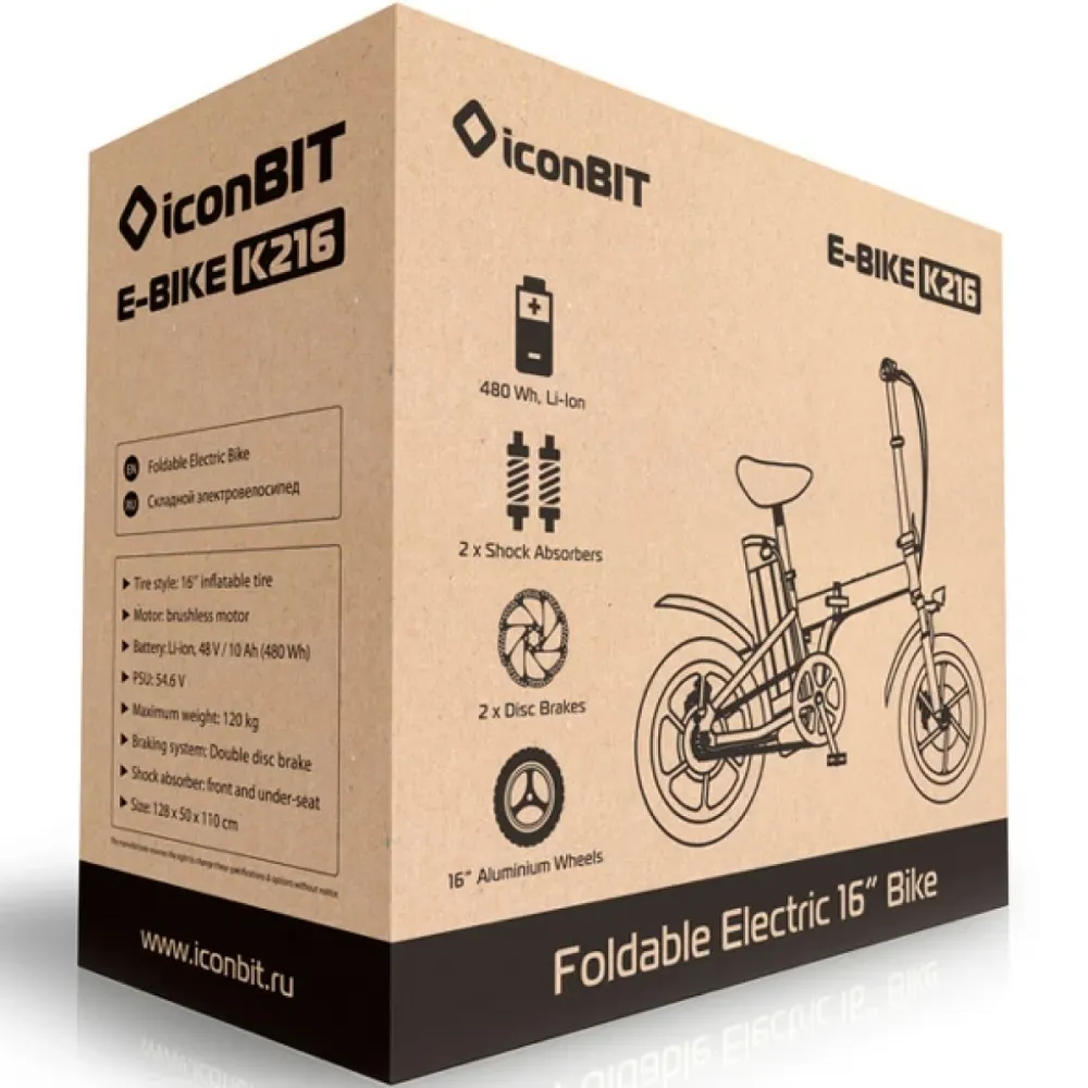 Электровелосипед iconBIT E-BIKE K216 черный – эргономичный компактный гибрид по приемлемой стоимости стал лидером продаж этого сезона. Складная конструкция рамы, удобная рулевая части и максимальные параметры комфорта по езды понравились прекрасному полу, подросткам и взрослым пользователям. Технические характеристики гибрида допускают эксплуатацию техники в пределах городской местности.