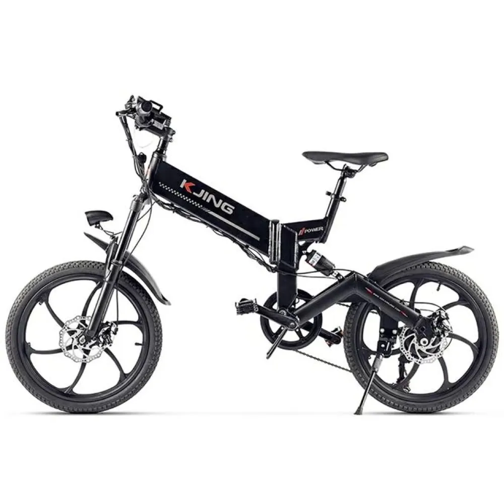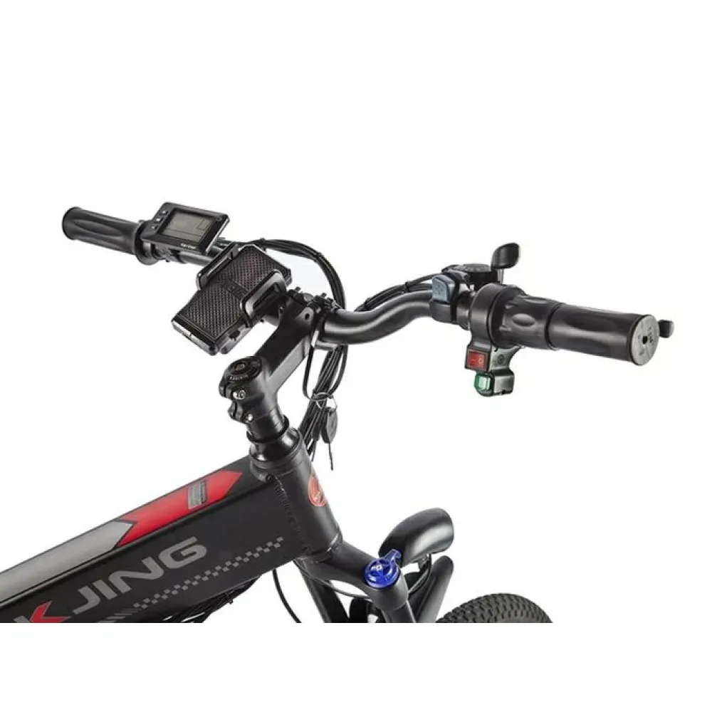 Электровелосипед Kjing Power Lux черный – люксовая спортивная техника с фирменной надписью на раме выделяет модель среди аналогичной техники. Скоростной байк изготовлен по инновационной технологии, мощный и надежный.