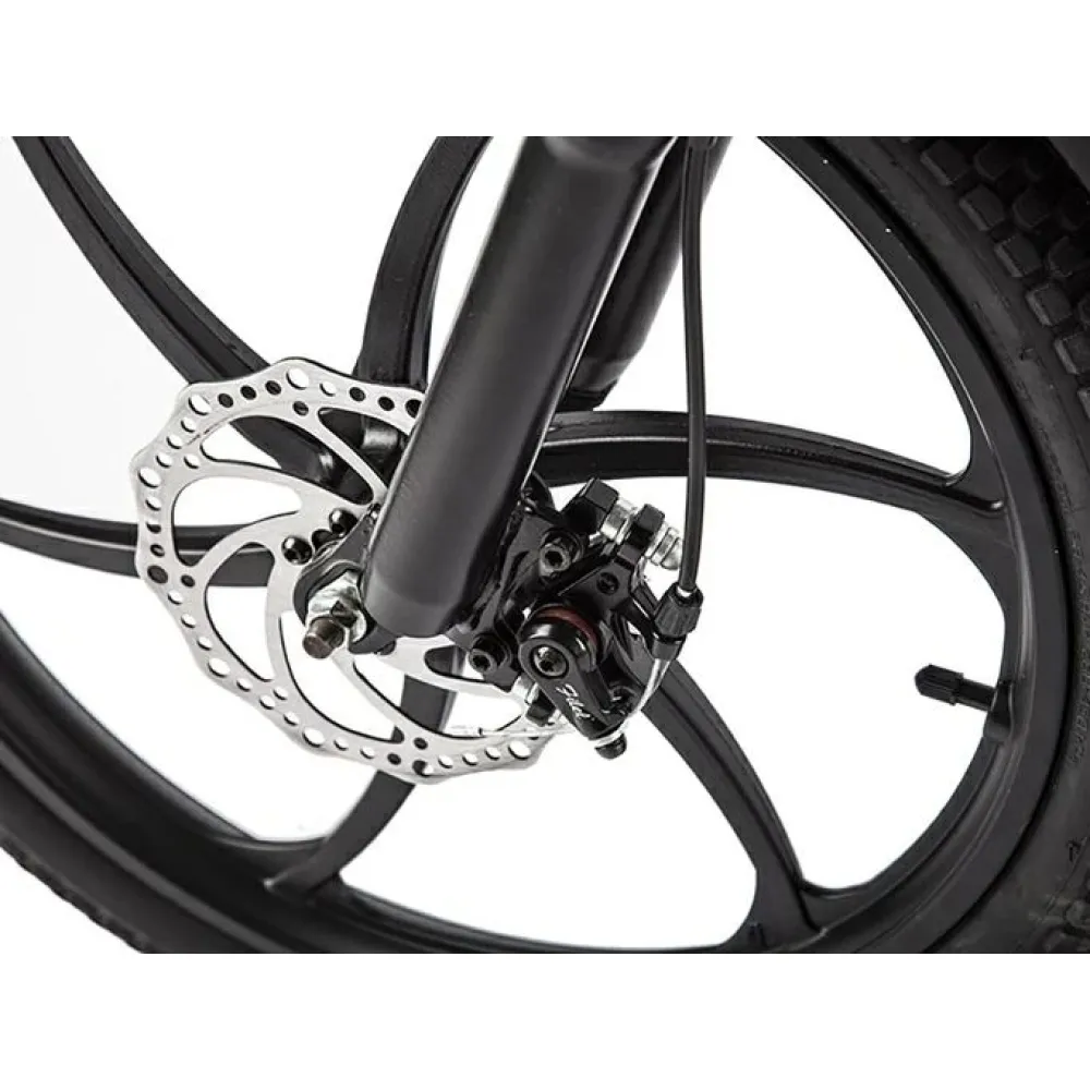 При массе конструкции 20 кг байк выдерживает нагрузку до 110 кг, рассчитанную на взрослого райдера. Электровелосипед занимает лидирующие позиции по продажам. Компактный и эргономичный. Представлен складной конструкцией. При необходимости одним движением руки трансформируется до минималистичный размер, удобных для хранения и перевозки в транспорте. 250-Вт двигатель обещает разгон техники до безопасной скорости 25 км/час и преодоление расстояния в 2 раза больше (40+км). 20-дюймовые колеса с широким протектором без труда преодолевают неровности, часто встречающиеся в сельской местности. 6- скоростная трансмиссия управляется с помощью половинчатой ручки.
